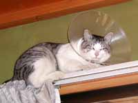 今朝、初めて蒼が獣医さんへ行きました。いきなり去勢手術。かわいそうだけど獣医さんとはお知り合いになっておかなきゃね。だけど私達の頃はエリザベスカラーなんてしなかったよ。クーやジライヤなんか抜糸にも行かなかったんじゃない?小慈朗母さんなんか自分で抜糸しちゃったって言ってたし。とにかくDORAおばさんは「やっと蒼に触れた♪」って喜んでるから。蒼はかなりビビッているけど夜になって麻酔も切れたようで元気です。