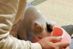 皆さん、新入りのルナをよろしくね。よく食べる子で食事も気まぐれにDORAおばさんが作ってやる子猫用ミルクも残しません。今はほっそりしたチビさんだけどじきに茶々のようなドスコイ猫になると思うよ。時々、起きてきておもちゃで遊んでいます。