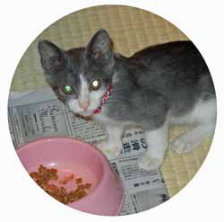 茶々を飛ばしてぼくトラ丸だよ。今日の夕方DORAおばさんが獣医さんに約束をしていた子猫をもらってきました。みゆみたいに黒々していないけど白と黒(チャコールグレー)の女の子です。名前ははなです、よろしくね。長いシッポの扱いはみゆみたい。チョロチョロとよく遊びます。