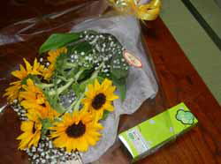 TOPPOさんからは『ほぼ日』でゲットしていたネコの日Tシャツをプレゼントされたし、ジュンちゃんも花束とお菓子を持って来てくれて、皆に忘れられていたわけじゃないんだよ。