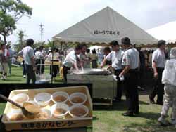 さかなセンターの炊き出し 具たっぷりのお味噌汁 |