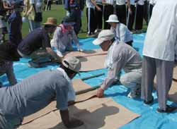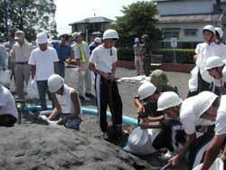 自衛隊の指導で土嚢作り 二次災害を起こさないために大切 |