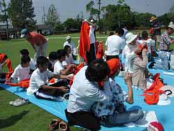 毛布と竹を使ったタンカ作り あるものを工夫して |
