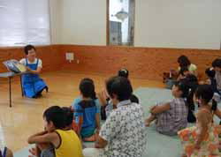 今回もう1度おはなしの会の約束の確認。しかし、小さい子がいるとなかなか集中力が続かず、ウロウロしたりぐずったり始めるし、これは結構伝染力が強い。