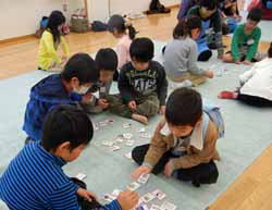この後は子ども向きの大判カルタをこれも年齢別で1組を4つに分けてそれぞれで取り合った。