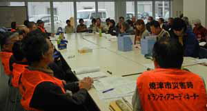被災地が早く自立するためのもので、何時から・何時まで活動をするかを決めて行くのがけっこう大変だが必要だとの事だった。立ち上げについては市や社教で決定してから数日(市の状況把握やボランティアコーディネーターも地元被災者なので自分が落ち着き動けるようになる事も必要)で、終了時は地域に復興の兆しが見え被災者のニーズも落ち着いた頃との事だった。