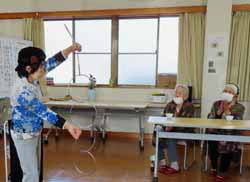 今日のお楽しみは大正琴の皆さんの演奏。演奏される皆さんもほぼ同世代なので、お互いの青春時代の懐かしのメロディ。送迎ボランティアさんが「この曲大好き」と歌い始めたり、『故郷』は皆でおなじみの手話を付けたり、最後の『好きになった人』ではみんなで手を振ったり、それぞれに楽しんだ。