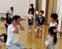 まず『茶摘み』で口の開き方、お腹の力の入れ方など発声練習。