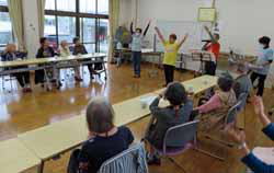今日のお楽しみはあいうえおアンサンブルの皆さん。「私達もここのボランティアの皆さんといい勝負の年だから」と言いつつお元気。口の動きを良くするあいうえおの歌から始まり、色々な歌を歌ったり、イントロクイズがあったり、最後には踊り出すのがこの頃のお約束。振りは『炭坑節』で焼津を歌った曲を初披露してくれた。