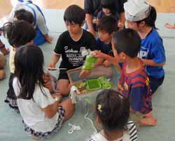 5月は手品のおじさんをお願いして、簡単な手品を見せてもらった後、子供達にも出来る手品を教えてもらった。このおじさんもボランティアで、もう80歳を超えておられるが今年もお元気な様子だった。
