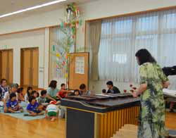 今回は夏らしく水に関わるお話が多かった。また七夕の一般的なお話ではなく中国民話が面白かったが長いので小さい子供達には難しかったようだ。