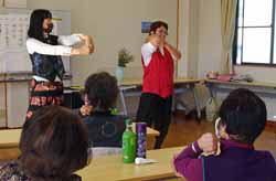 間で「手品は手の柔らかさが大切、体操教室でも教わった人がいるでしょうが」、「転んだ時も手から着くのよ」とちょっとした体操も教えてくれた。
