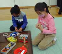 その後は羽根つきやケン玉、だるま落とし、こま、すごろくや福笑いなど昔からある遊びを楽しんだ。