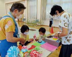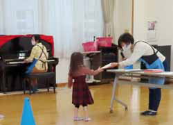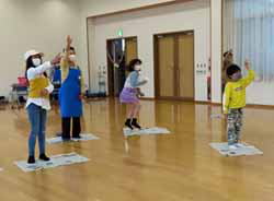 おやつやお弁当はまだお持ち帰り。それでも、しばらくぶりで顔を合わせ、体を動かしたり歌ったりで楽しそうだった。