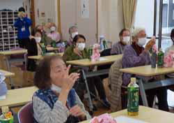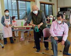 お誕生会の後、後半はころばん体操。今日は監査で市役所の担当さんも見えていて、一緒にやってくれた。「写真で毎月の活動状況も見てもらったよ」と言ってくれたので、道楽の写真も少しはお役に立っているのかも。