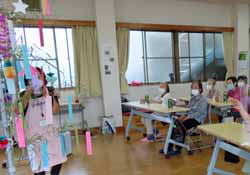 7月は七夕の短冊に願い事を書く。健康だったり平和だったり、それぞれの個性が出たものになる。