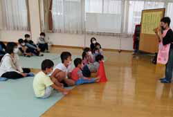 ゆっくりと時間をかけてのお友達紹介の後は、Kさんによる絵本や紙芝居など5つ。ベテランでとても上手な方なのだが、さすがに最後は小さい子の集中力が切れてきた。