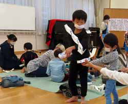 最後に1年のまとめとしてアンケートと表彰式。とはいえ今年度は皆勤賞は無し。コロナのせいで予定が崩れたこともあるが…。子供達からは手品や歌・工作が人気だったようだ。「ケン玉」と元気よく言った子は確かにケン玉が上手だった。