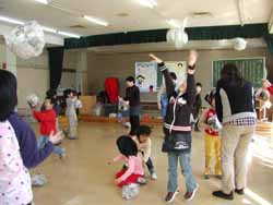 3歳児から小学校3年生の子供達が一緒になって季節の遊びを通して工作、ゲームや歌など様々な活動をしているそうだ。実際には70名からの子供達が居るそうだが今日の出席者は20名ほど。4つのグループに分かれて年上の子供達がリーダーを勤めているようだがしっかりしたグループに纏まっているわけでもないらしい。世話役のおばさん達が10名位で進行し、お母さんも何人か混じる。
