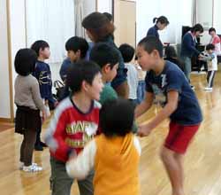 新年なので『たこたこあがれ』の歌を歌った後、干支の話・『としがみ様とお正月』の紙芝居・その後はお正月の遊び色々の体験。けん玉・独楽・おはじき・福笑い・お手玉・あやとり・カルタなど、さらに子供達が羽子板やビンのフタのこま・だるま落とし・ゴム鉄砲などを持ってきて、それぞれに遊びを体験した。普段あまりやらないらしく、けん玉・独楽・お手玉・おはじきなど技術を要するものは小学生もほとんど出来ないようだった。