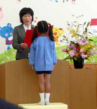 今年も保育証書授与で子供の名前を呼びあげながら担任の先生が涙ぐんでいた。子供達は元気一杯。皆しっかりと園長先生に向かって自分の名前を言えた。