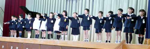今年の入園児は34名、年長さんとちょうど同数になった。今年入園した子供達はあまり物怖じせず、先生に名前を呼ばれて元気に返事をして手を挙げる。とても活発な子がいて年長さんの持つカスタネットに手を出したりピアノの鍵盤を触ったり、ルールを理解するまで先生方は大変だと思う。