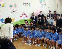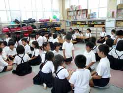 まず、1時頃に第1地区の人達と小学校内にある学童保育所へ。ここは元の用務員室を改装したもので一昨年の改装で少し広くなったが子供の数に比べて狭く、子供達が来たら話もできないという事で早めの時間の訪問になった。