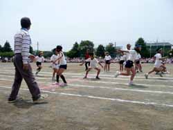 こちらのメインイベントは長縄跳び。クラス皆でクルクルと途切れなくどれだけ飛べるかを競う。そして華はなんと言ってもリレー、お昼前は1〜3年のクラス対抗リレーだったが、どのチームも一生懸命、特に3年生は初めてのバトンと外周コース、みんな一生懸命だった。