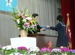3クラス、116名が卒業。残念ながら1人が人中に出ることが苦手で別室で卒業証書を受け取った。そして、最近九州へ転校した子が1人、お母さんとともに列席していた。