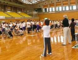 土砂降りの午前中、市体育館で福祉会の運動会。特別養護老人ホーム・障害者作業所・障害者ディサービス施設など8施設の利用者が参加をして運動会を楽しんだ。