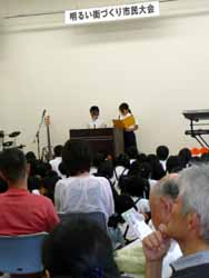 午後は公民館祭りの開会式と明るい街づくり大会。例によってさまざまな挨拶の後、小学生の作文と明るい街づくりの誓い。その後、大人版の大会宣言案が読み上げられて採択された。