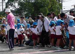 オープニングセレモニーは近くの小学校の4年生全員による合唱とリコーダーの演奏。『明日がある』・『サザエさん』や『笑点』のテーマなどおじさん・おばさん受けをねらった選曲にしたようだ。最後に応援リーダーがサプライズで出た。さまざまな関係者とともに子供達の家族なども大勢見えて公民館のホールは大入り満員、天気も良かったので外でやればいいと思うのだが、それもまた色々と問題が出るようだ。