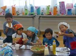 作る間はワイワイとにぎやかだったが、食べるだんになると皆おとなしく食べていた。