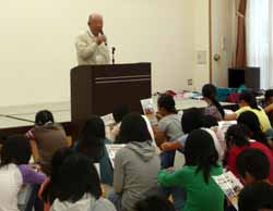 今日のプログラムはまず、地元の自治会長さんが地域のお話をした。大井川・瀬戸川の扇状地として陸地になったこと。鉄道・新幹線・高速道路の発達とともに土地が発展してきたこと。神社やお寺から土地の文化の話などをしてくれたのだが小学生には少し難しかったかもしれない。