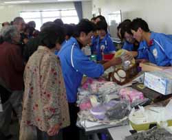 各地区から持ち寄ったものを衣料品・雑貨品・洗剤・食品に仕分けして、それぞれ売りやすい形にして値段をつけて並べてしまう。理事と各地区から2〜3名が出で2時間近く掛かった。