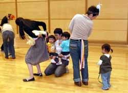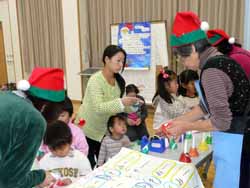 クリスマス会のせいか今日は双子三つ子の会も大盛況。手遊びや新聞紙破りをしてそれをゴミ袋に入れて大きなボールにして投げたり。大型絵本はちょっと子供達には話が難しかったようでお母さん達の方が喜んでいた。その後でまた新聞紙の通せんぼを通るかけっこ、とはいっても子供達には意味不明でだだ走り回って喜んでいた。