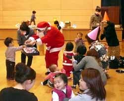 最後はクリスマスなのでお約束のサンタさんが登場。『赤鼻のトナカイ』『あわてんぼうのサンタクロース』を踊って、折り紙で折ったサンタさんのプレゼントを子供達に配った。