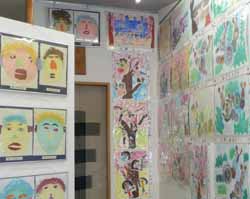 今日から始まった小学校の特別支援学級の展覧会を見に行った。書初め・絵画・工作など、狭い画廊の中に所狭しと並んでいた。
