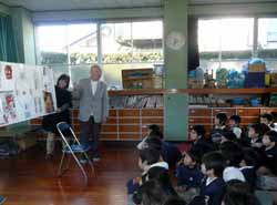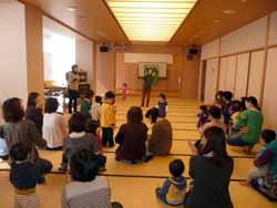 まずボランティアグループ「こんぺいとう」の3人による、手遊びや絵本の読み聞かせ。このグループには別の地区の主任児童委員さんが入っている。後からもう1人の方に「子育てサポーターリーダー養成講座に見えてましたね」と声をかけられた。彼女はその時の担当さんだったそうだ。絵本は寅年に合わせたか『チビクロサンボ』。前に居る子供達は身を乗り出しているが、後ろで走り回っている子供達も多い。