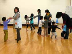 朝のお天気があまり良くなかった事もあり、出足は鈍かったが、かなりの人数が集まった。お母さん同士もなじんできたようだが、子供達も場になじんで元気な子は広い所を走り回る。