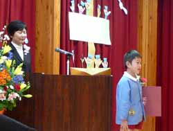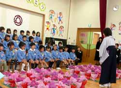今年は小学校からは校長先生ではなく主幹の先生が見えたが、「お兄さん・お姉さんがみんなを待っているよ」そして「早寝・早起き・朝ご飯をしっかり食べて元気な1年生になろう」と子供達に語りかけた。この学校だけでなく市内7校に子供達は進学する。