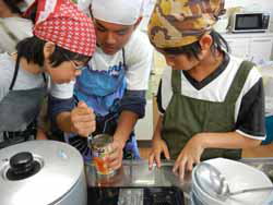 班ごとに福祉大の学生さんも入ってくれているので、子供の把握はお任せでまず近所のスーパーへ買い物。班長さんも「おばさんこっちだよ」と気を使ってくれた。そして、どうしても大箱のアイスをデザートに使いたくて、必死になって他の材料費を切り詰めているのを楽しく見ていた。スーパーのレジの方も馴れたもので、40円そこそこのお釣りに「上手に買ったね」とニッコリ。必死のやりくりで帰ったのは最後だった。