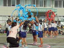 開会式の後の玉入れでは市長はじめお客さん達も参加、徒競争、順送球、大玉転がしなど運動会らしい競技が続く。もちろん体力に合わせて距離は短いし、できる事に合わせてハンディも付いている。やる気満々な人もあれば、ゆったり急がずの人もあるが、それぞれに楽しんでおられたようだ。