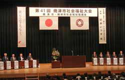 式典は焼津市民歌を歌った後市長の挨拶、長年福祉にかかわってきた方や大口の寄付をされた方の表彰、来賓の議員さんがたの挨拶と粛々と進んだ。