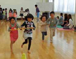 年中さんと年長さんの2クラスしかないのでごくささやかだが卒園した小学生、園庭解放に来ている未就園の子供達、親子競技やお祖父さん・お祖母さんの出番もあってにぎやかだった。