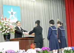 新入生の呼名の後、各学年代表者に今年の教科書が渡された。