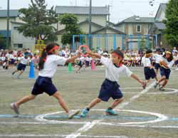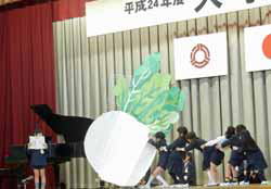 歓迎の言葉は2年生、国語で学んだ『大きなカブ』の劇の一部や暗算、縄跳び、鍵盤ハーモニカと踊りなど、1年生の学習の成果を披露した。