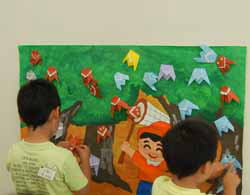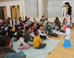 例年通り、はだかっこの会の歌『友達賛歌』の練習や、エプロンシアター(今年は『大きなカブ』)や、友達になろうという自己紹介じゃんけんやグループ作りの遊び。間で子供達の呼名(小さい子が上手に返事をしたので今年はみんなお返事が良くできた)やボランティアの紹介、はだかっこの約束や保護者へのお願いなどがちりばめられた。