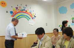 院長先生からお話を聞いた。ここの乳児院は社団法人が運営されている。これまでは建物までを静岡市で作ってもらって指定管理者として運営をしていたそうだが、以前の場所が津波などの時に危険なため山の方に移るのを機に建物も自前にしたそうだ。一部2F建ての明るくかわいらしい建物だった。0〜3才未満の子供達定員20名の所に現在は11名がいるそうだ。乳児院は県内4か所あり全部で90名預かれるそうだが、現在は余裕があるそうだ。たまたま0才児が多いとその先数年引き続きという事で人数が増えるらしい。
