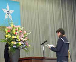 始業式では各学年代表が今年の自分の目標についてそれぞれ決意を述べた。